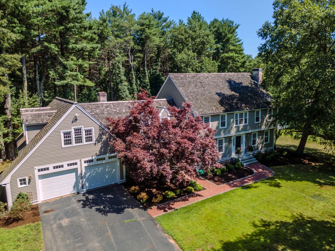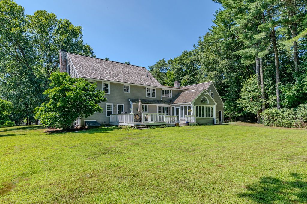 A: The home offers 5,013 square feet of living space with 4 bedrooms and 3 bathrooms, set on a 1.68-acre lot alongside a town forest in South Hingham.