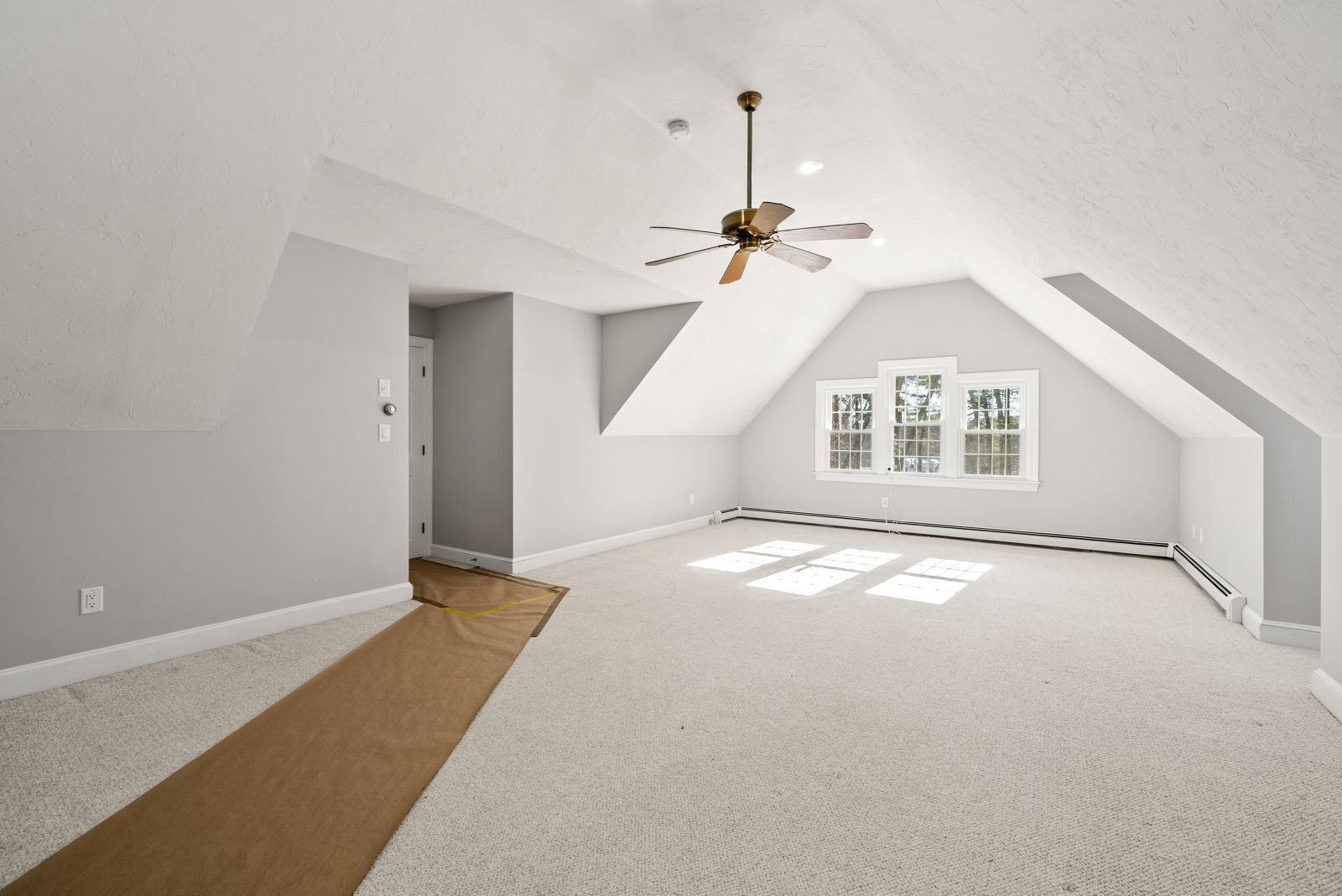 Upstairs, the primary suite stands apart. A private annex off the bedroom works equally well as a home office, a sitting room, or a quiet reading space — the kind of room that's genuinely useful, not just a floor plan feature. The bonus room above the garage, accessible from two separate levels, gives the house a rare flexibility that buyers with different needs — work-from-home, guest suite, gym, recreation room — will all read differently and all appreciate.