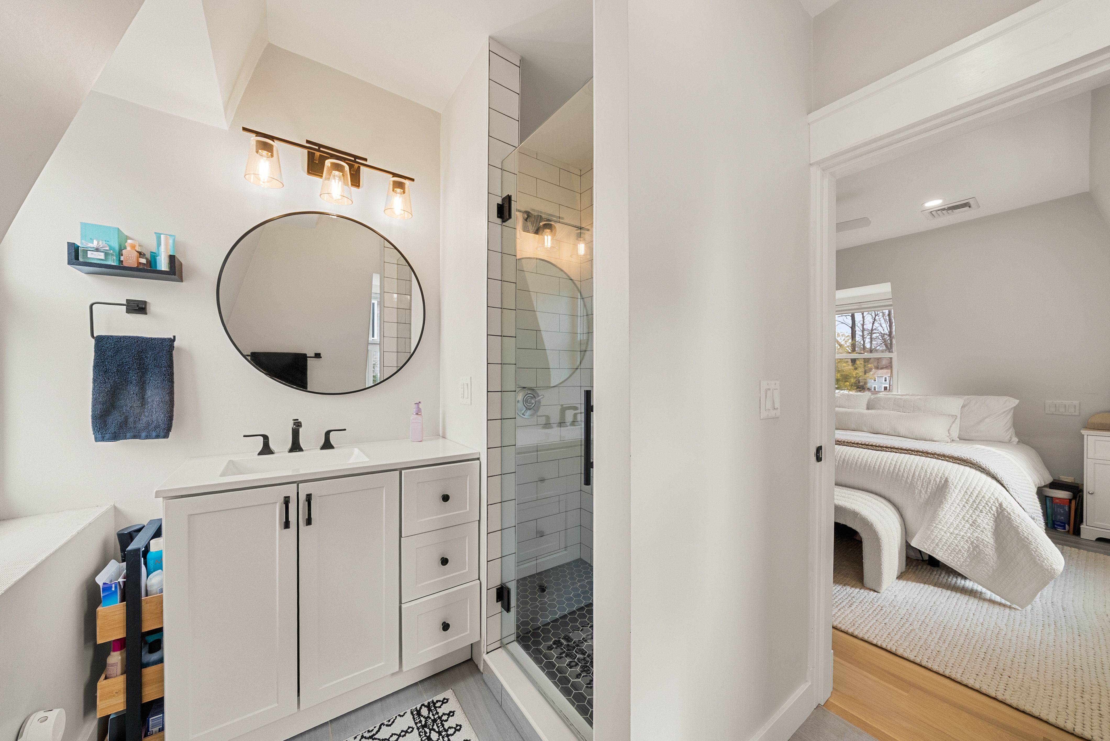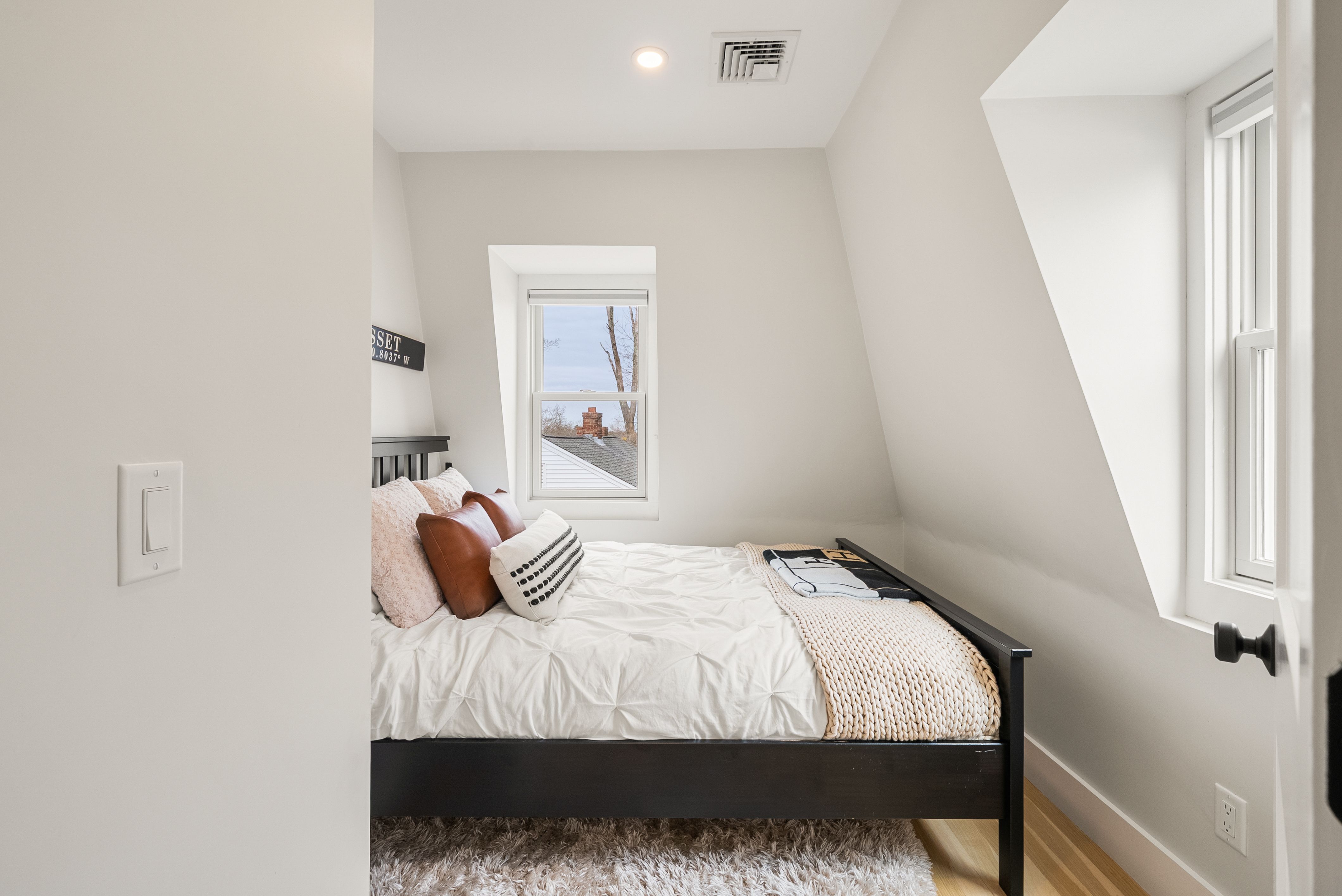 The kitchen is the centerpiece: Bosch appliances, custom cabinetry, quartz countertops, and a spacious island that can handle everything from weeknight dinners to weekend entertaining. The sun-filled dining area keeps the space feeling light and airy even on a gray South Shore morning. Bathrooms have been updated with modern finishes throughout, and the primary suite gives you a proper retreat at the end of the day.
